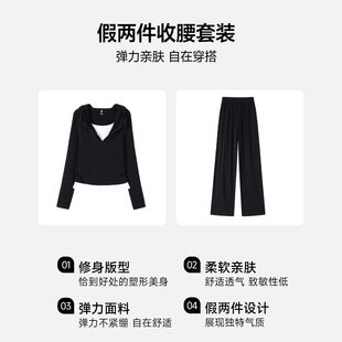 连帽外套收腰阔腿裤 新款 女Q 女2025秋季 班尼路S&K系列纯色运动套装