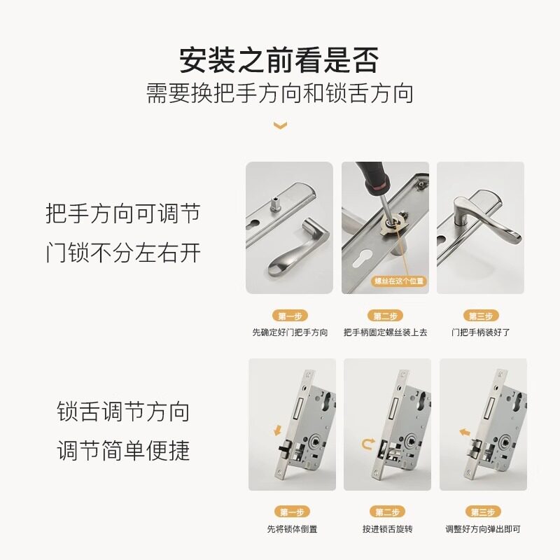 卧室门锁门把手室内家用通用型房门房间锁具入户木门全套老式 手柄
