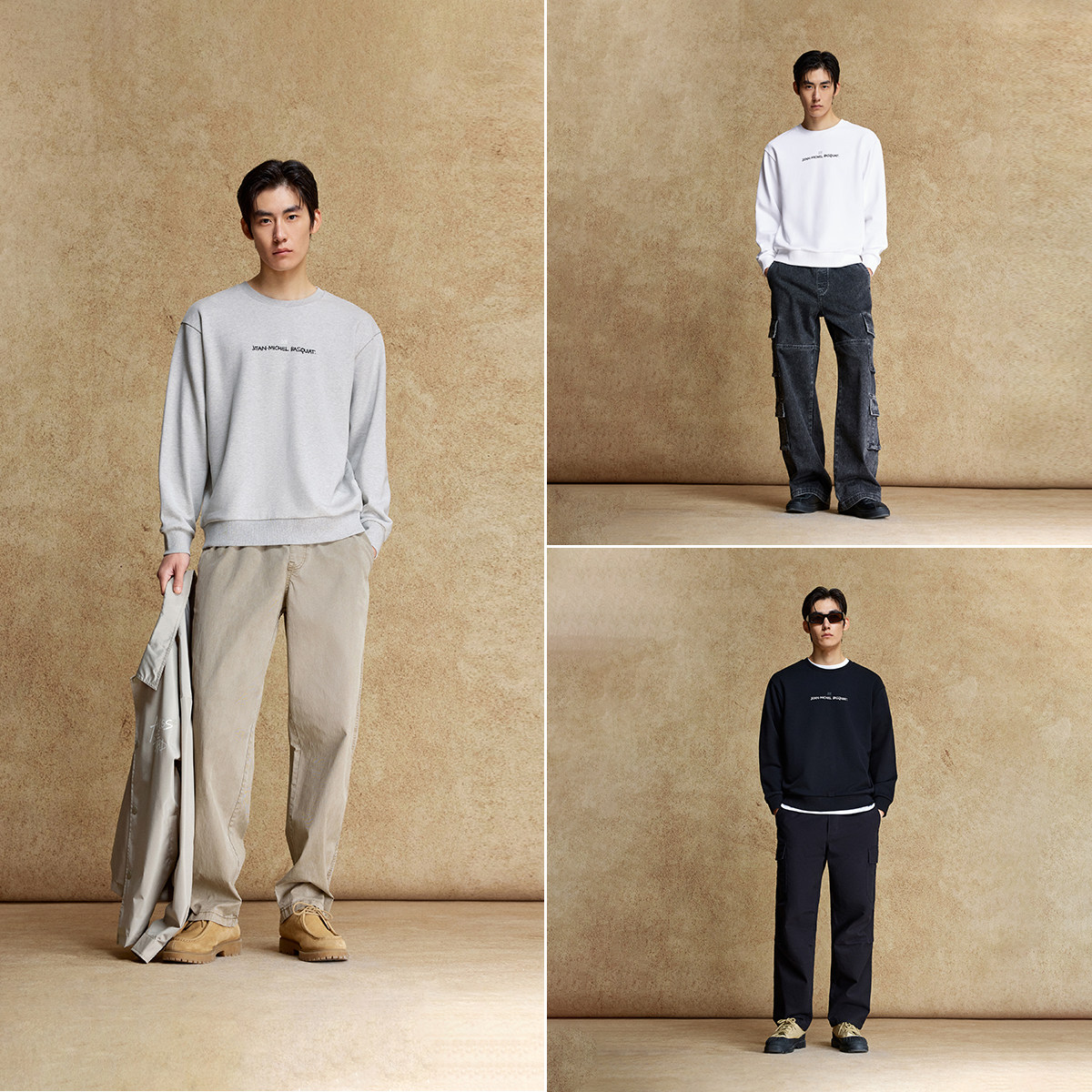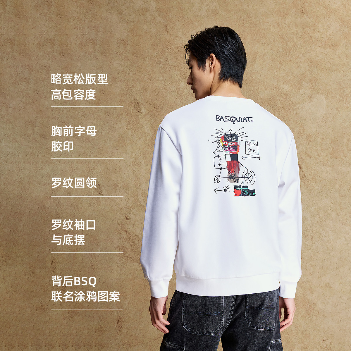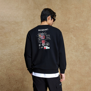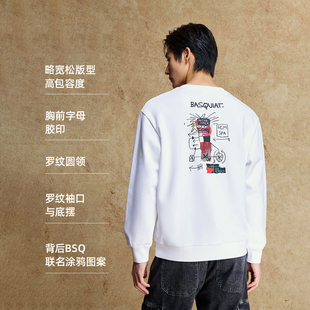 上衣 胶印宽松纯棉圆领长袖 杰克琼斯BSQ联名男装 冬卫衣个性