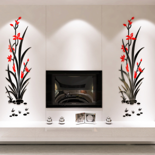 墨花创意水晶亚克力3d立体墙贴画玄关客厅卧室电视背景墙贴纸装 饰