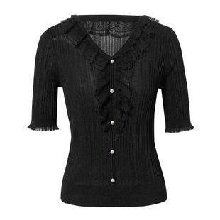 女v领短袖 荷叶边饰优雅气质套头衫 新款 上衣 Koradior拉珂蒂春季