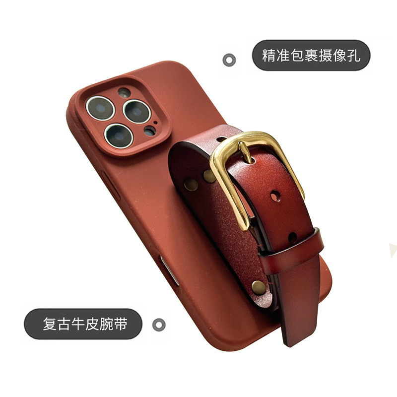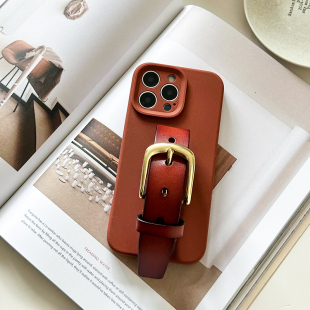 氛围手机保护壳 15系列冬季 美拉德暖栗子棕复古皮带液态精孔硅胶iphone17Promax经典 铜扣腕带手机壳苹果16