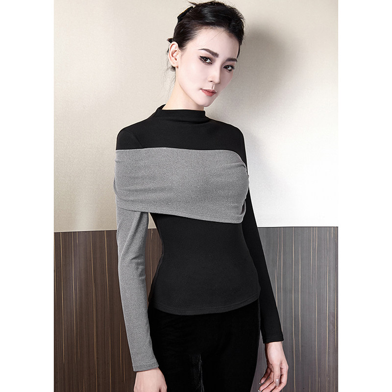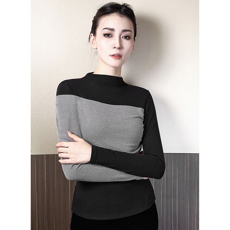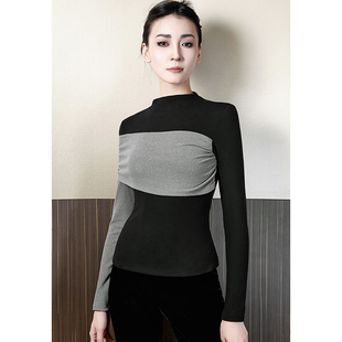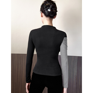 显瘦百搭打底衫 洋气撞色拼接堆堆领长袖 半高领T恤女 新款 2025秋季