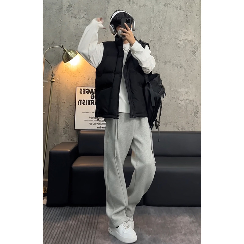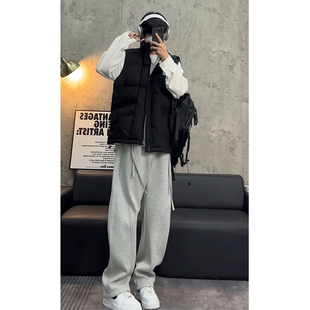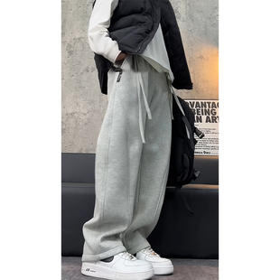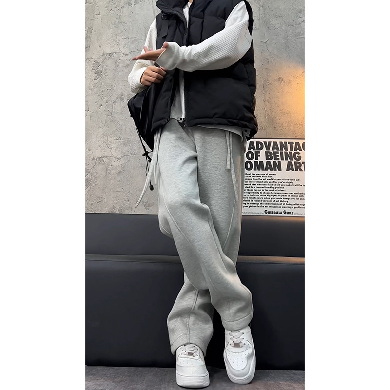 子拼接设计感镰刀香蕉休闲裤 秋冬重磅加绒运动裤 男款 灰色弯刀卫裤