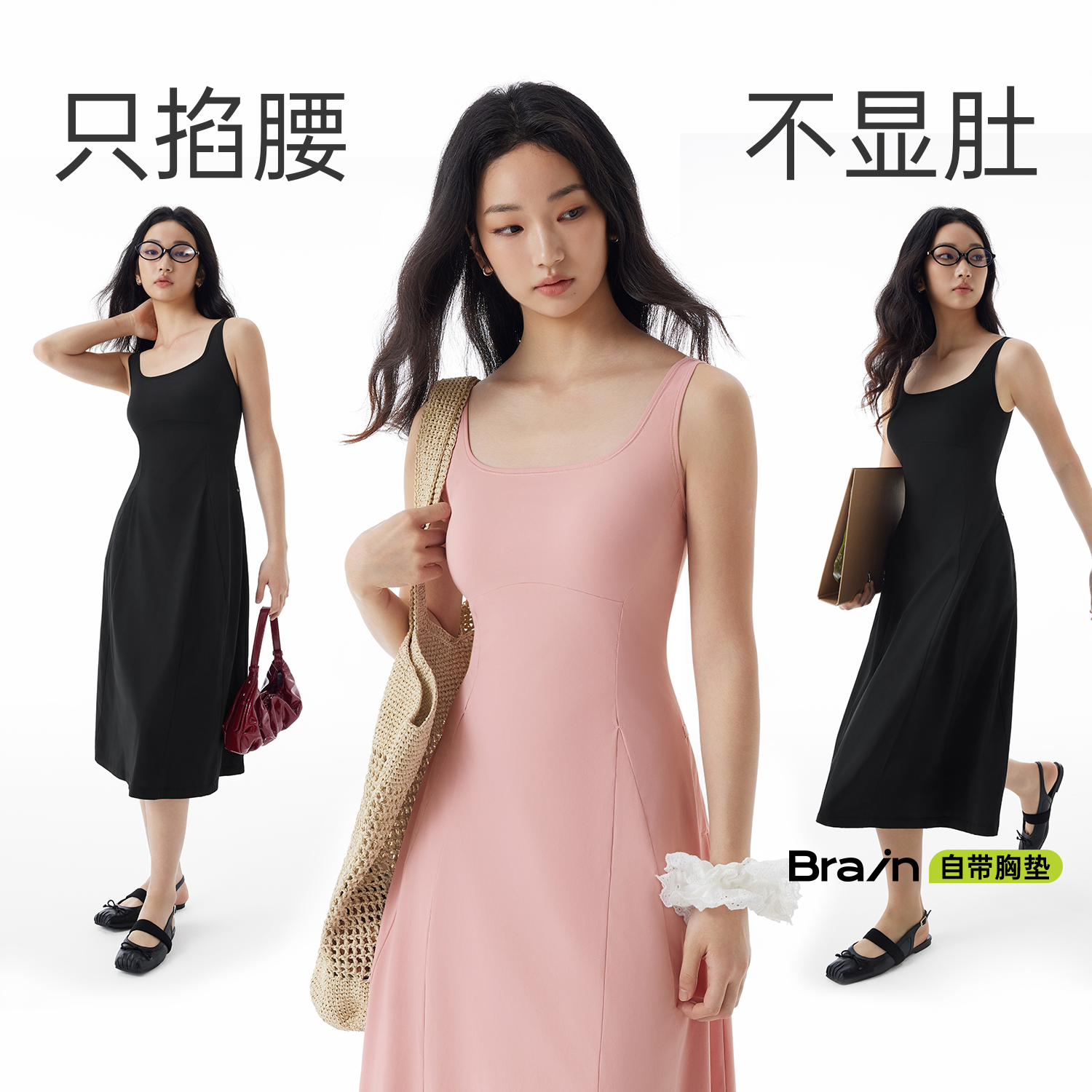 半练带胸垫连衣裙背心裙子黑色长裙吊带裙秋季 打底小黑裙 流行新款