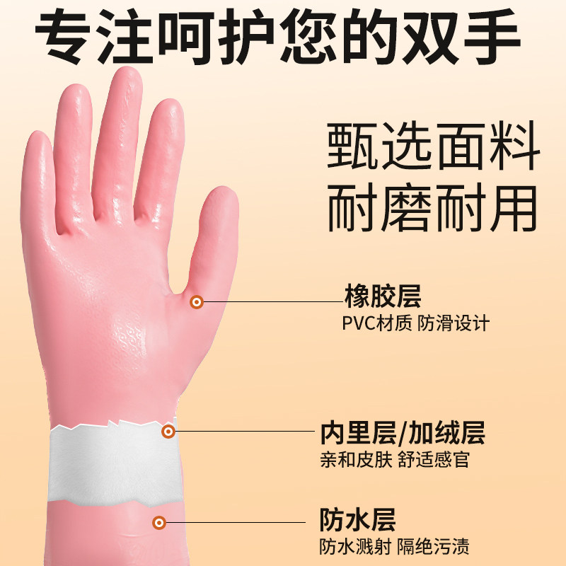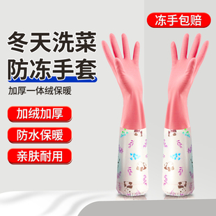 冬天洗菜防冻手套耐用防水加绒加厚洗碗厨房家务厨房餐饮加长保暖
