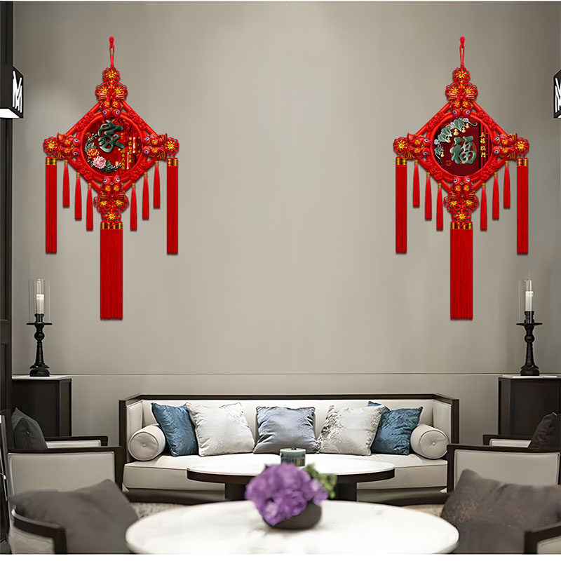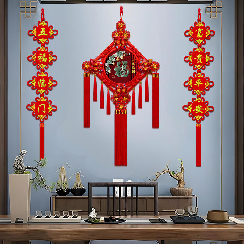 新款 中国结挂件仿玉雕挂饰桃木彩绘中国结客厅玄关背景墙乔迁送礼