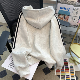 春秋款 拉链外套男女情侣装 重磅 三条杠撞色连帽卫衣开衫 wassup美式