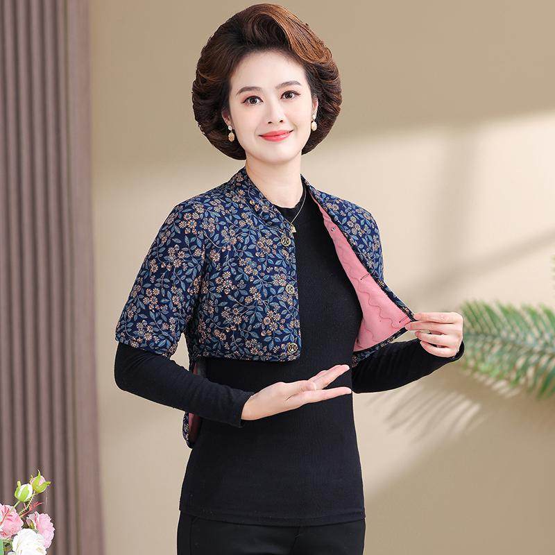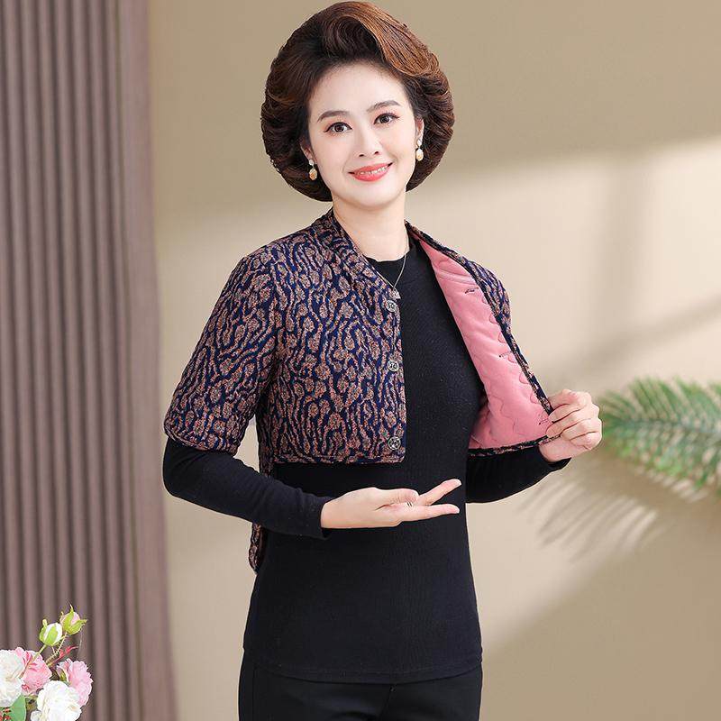 新款 保暖棉服外套洋气中老年女装 春秋小棉袄 棉衣新中式 妈妈秋冬款