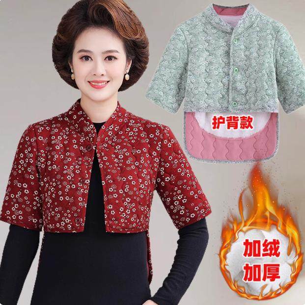 护肩护腰马甲女棉袄中老年冬装 加绒短袖 加厚护背小棉衣 女装 妈妈装