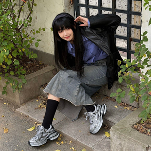 女加绒厚底增高情侣休闲运动鞋 骆驼银月老爹鞋 子 迪丽热巴同款
