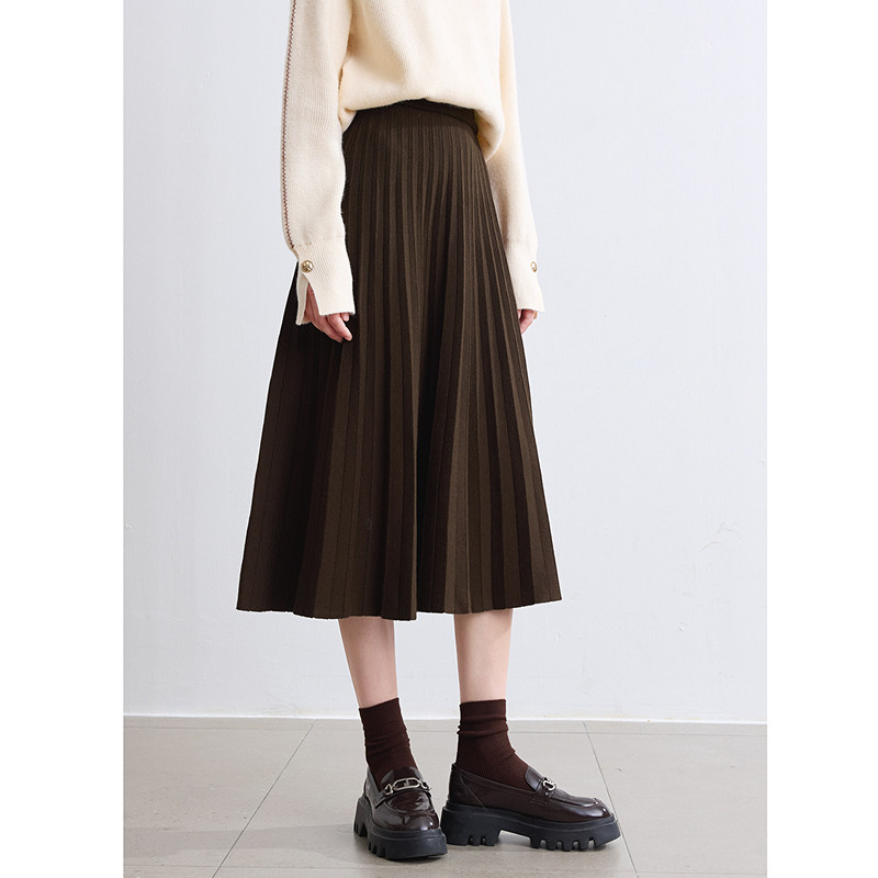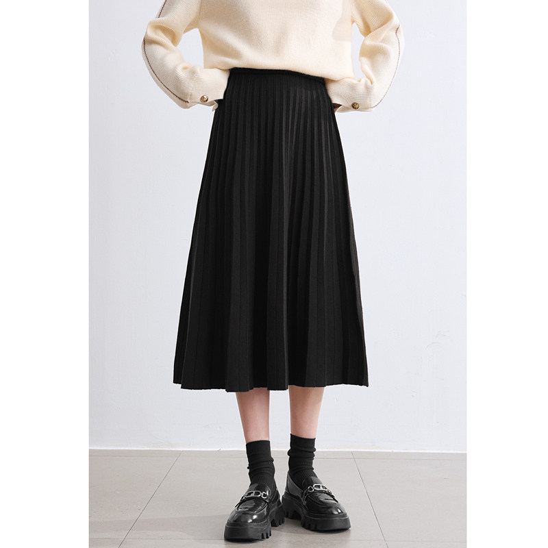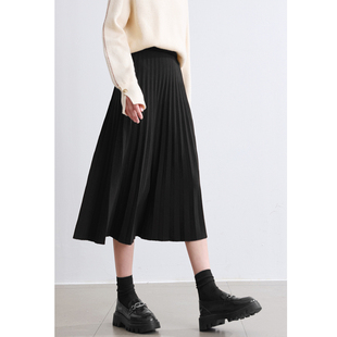betu百图针织百褶裙遮胯显瘦中长款 针织裙百搭半身裙