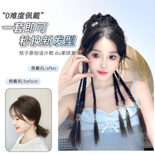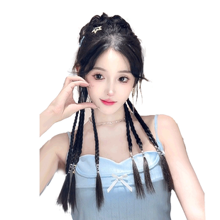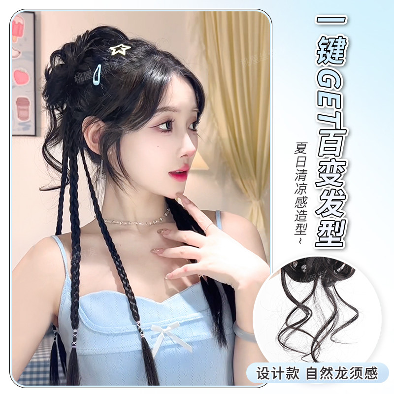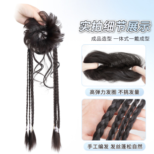 假发辫马尾丸子头假发抓夹新中式 双麻花长辫高马尾假发花苞头发饰