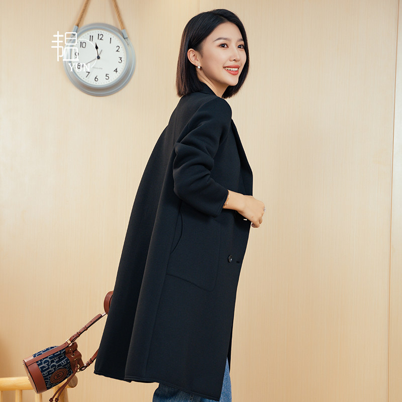 黑色休闲百搭连帽夹克上衣 胖mm双面穿毛绒棉服外套女冬季 大码 女装