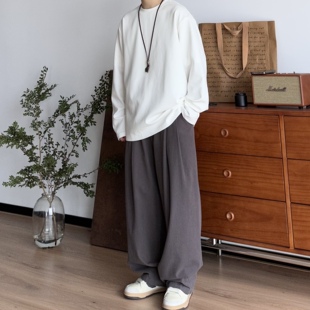 圆领打底衫 T恤落肩袖 宽松内搭 秋冬320g重磅纯色长袖 B东日系男装