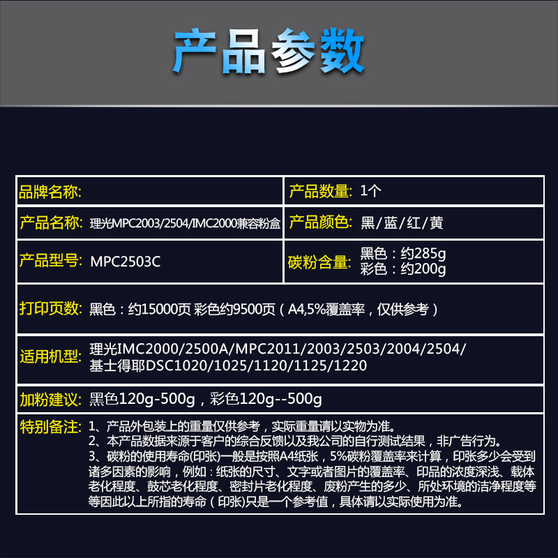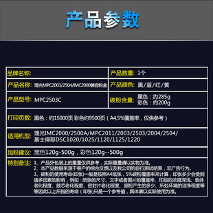 2004 2504彩色粉盒碳粉IMC 2011基士得耶DSC1120 2003 1125 2001 2503 2500A 中恒CET适用理光MPC 2000