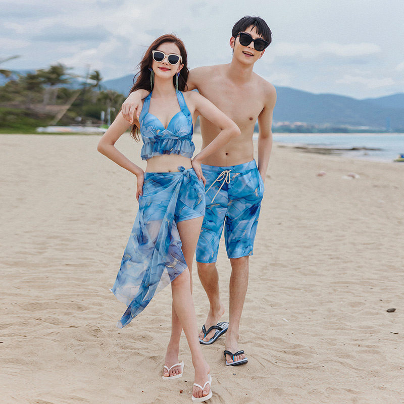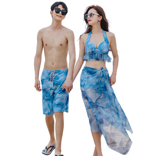 情侣泳衣女比基尼钢托聚拢花色显白性感纯欲温泉海边度假男沙滩裤