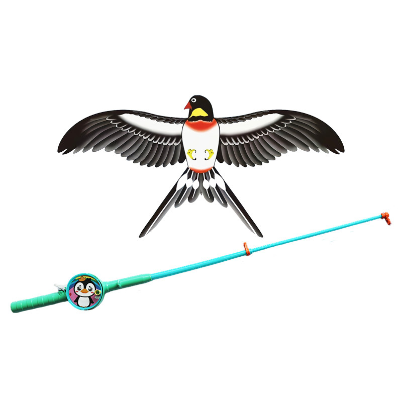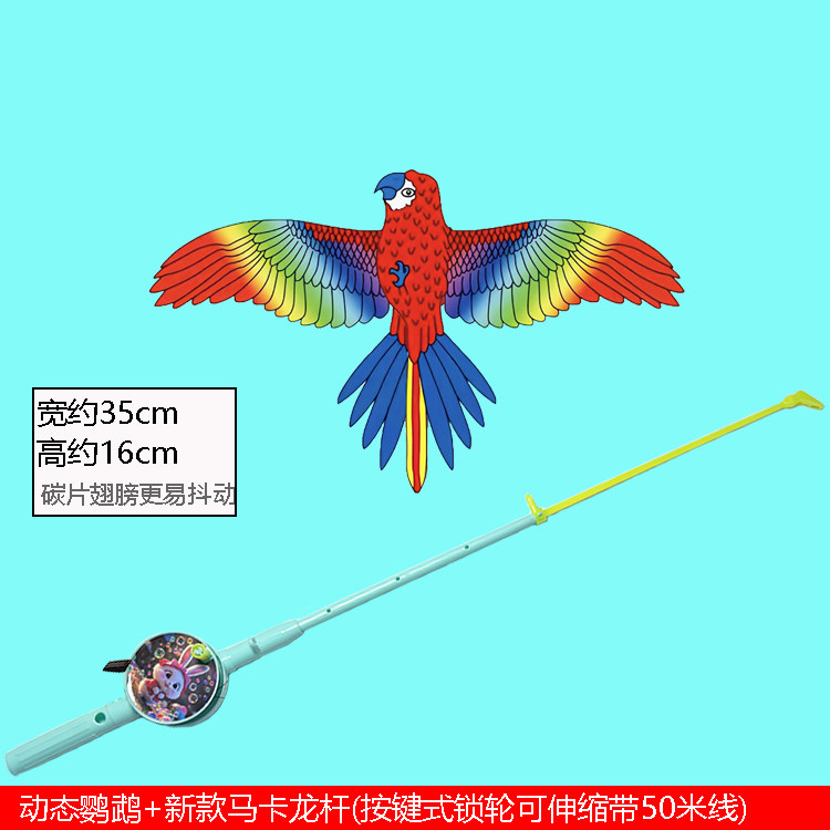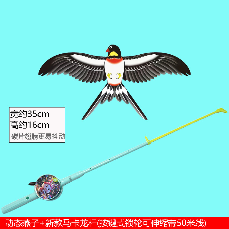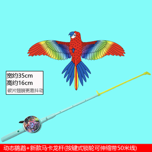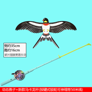 马拉松头挂新款 儿童手持鱼竿动态燕子金鱼鹦鹉翅膀抖动卡通风筝