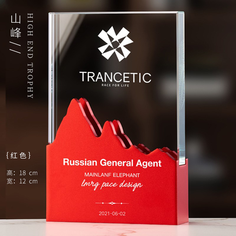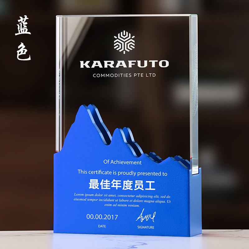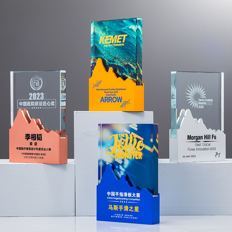 山峰奖杯定制定做比赛周年庆典水晶奖座先进工作者纪念品玻璃奖牌
