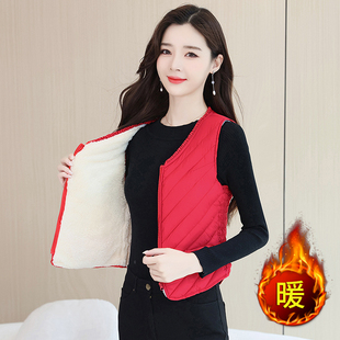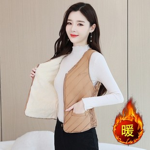 内穿马夹 保暖加厚背心羊羔绒修身 秋冬新款 加绒羽绒棉马甲女士短款