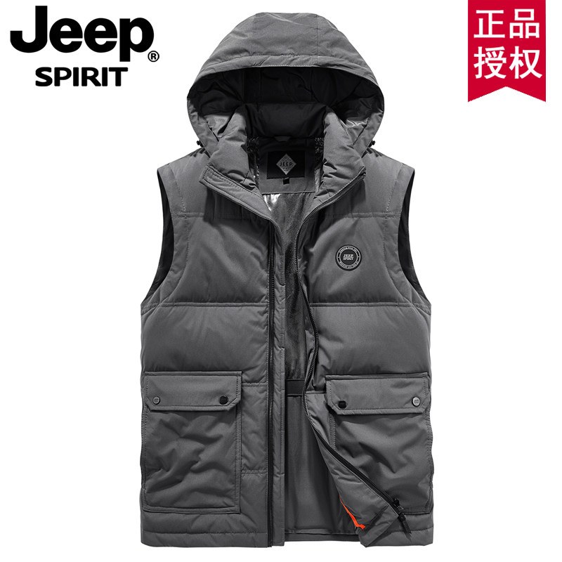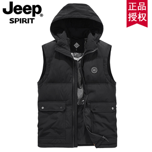 JEEP吉普羊羔绒羽绒马甲男款 保暖背心加绒加厚外套 坎肩棉马夹冬季