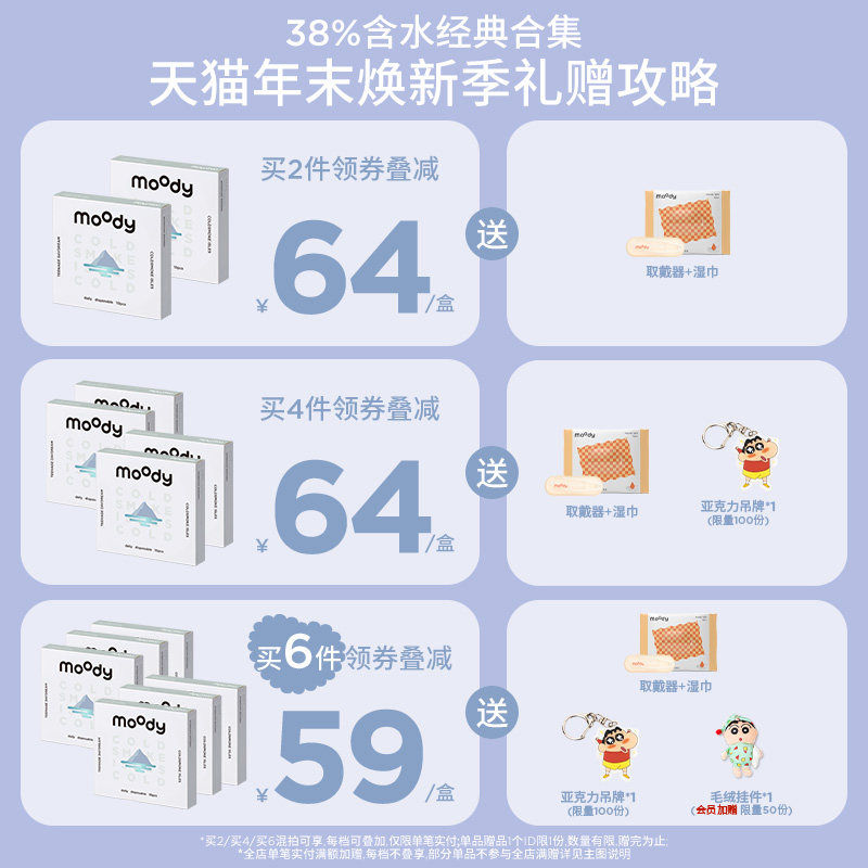 moody美瞳日抛经典 38%低含水新手长戴胶片棕彩色隐形眼镜10片