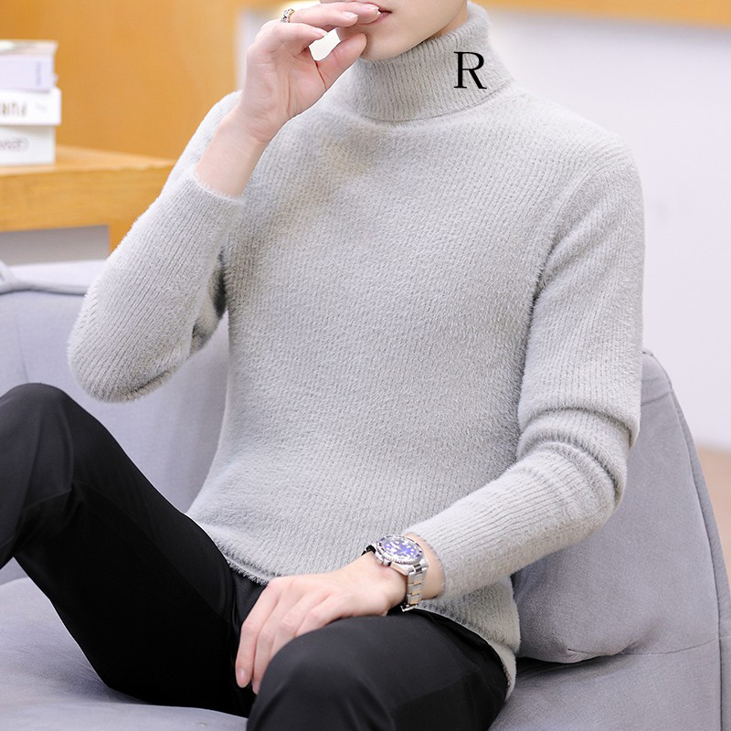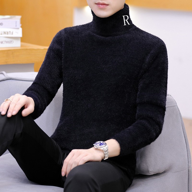 青少年绒毛衫 水貂绒高领毛衣男士 加绒厚款 2025秋冬季 男潮流 打底衫