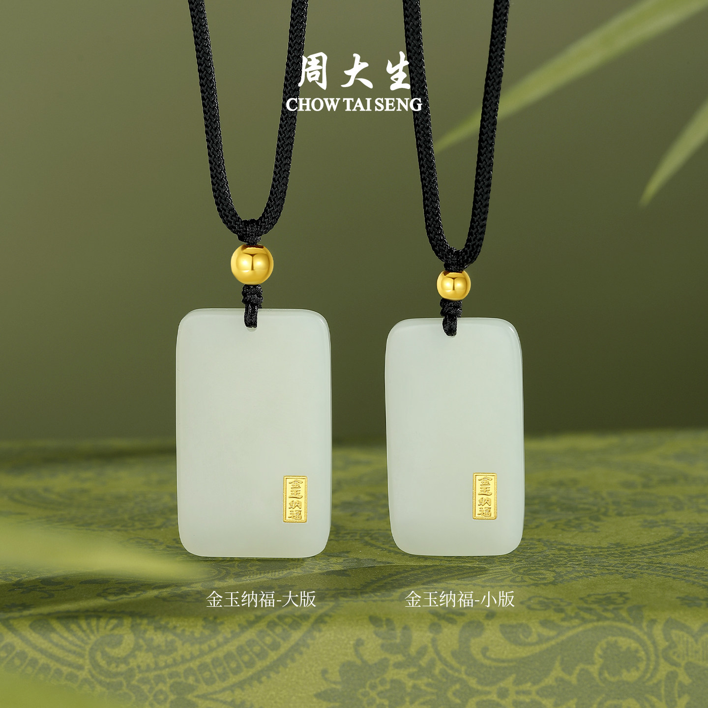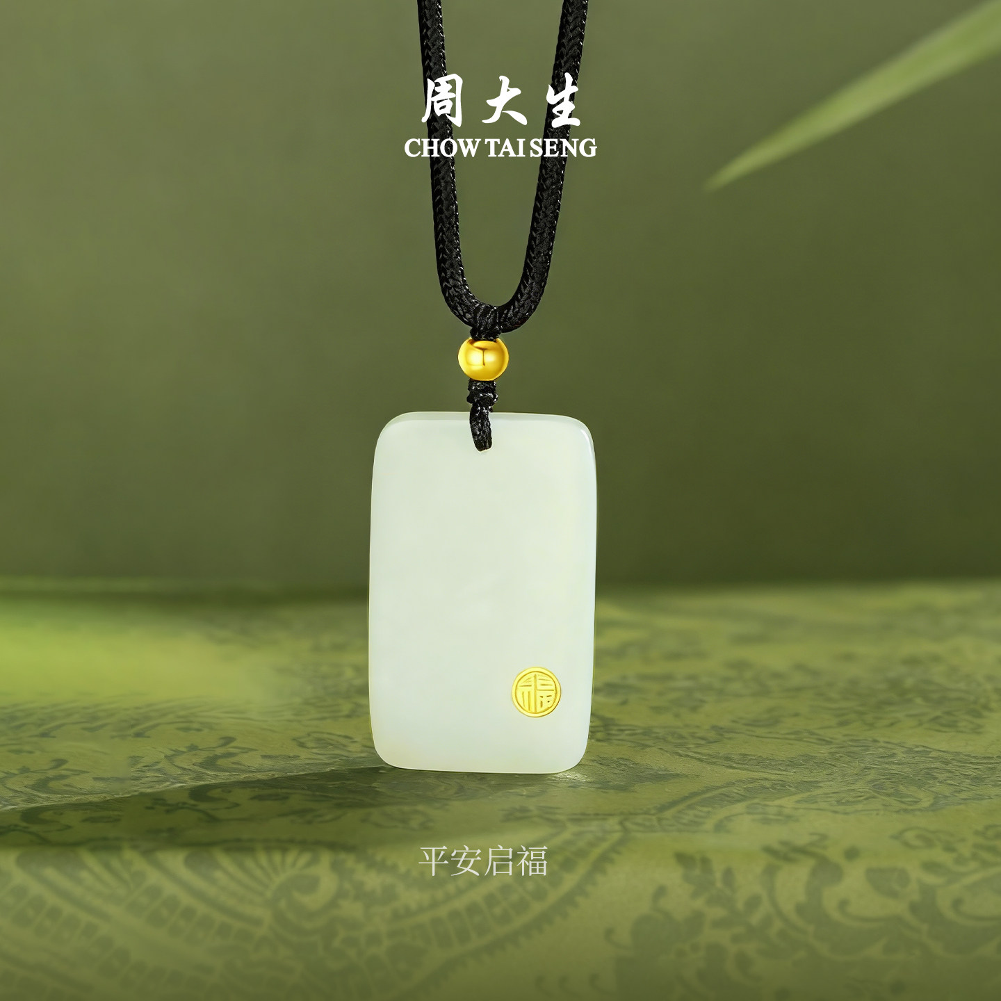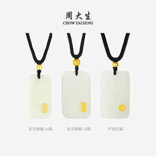 周大生黄金和田玉吊坠男女款 平安无事牌玉坠项链送男友新年礼物
