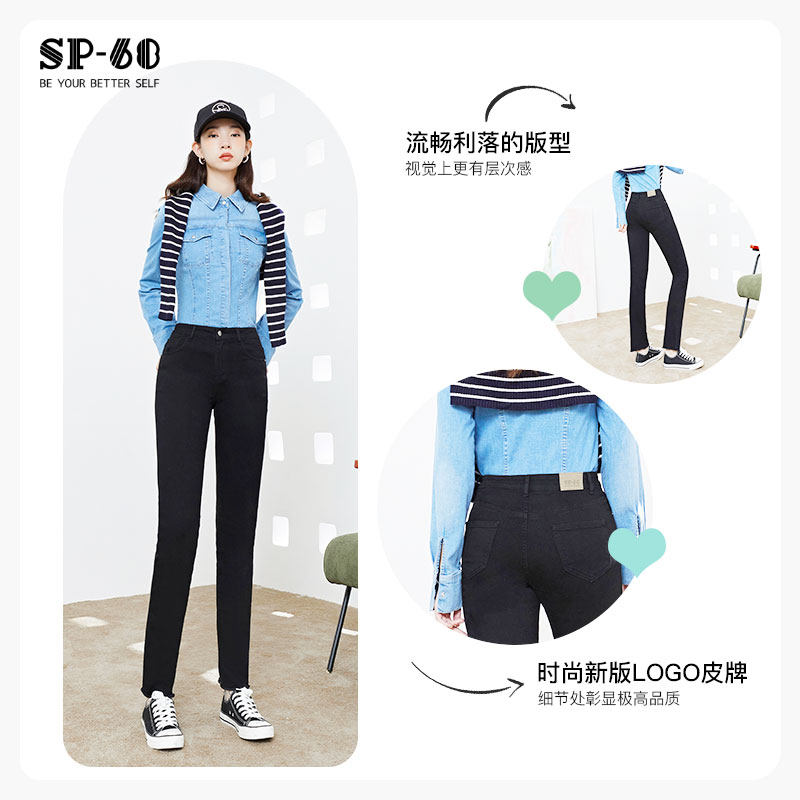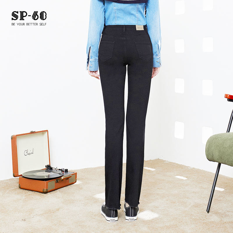 宽松时尚 sp68牛仔裤 女中高腰加绒加厚保暖直筒黑色2024秋冬新爆款