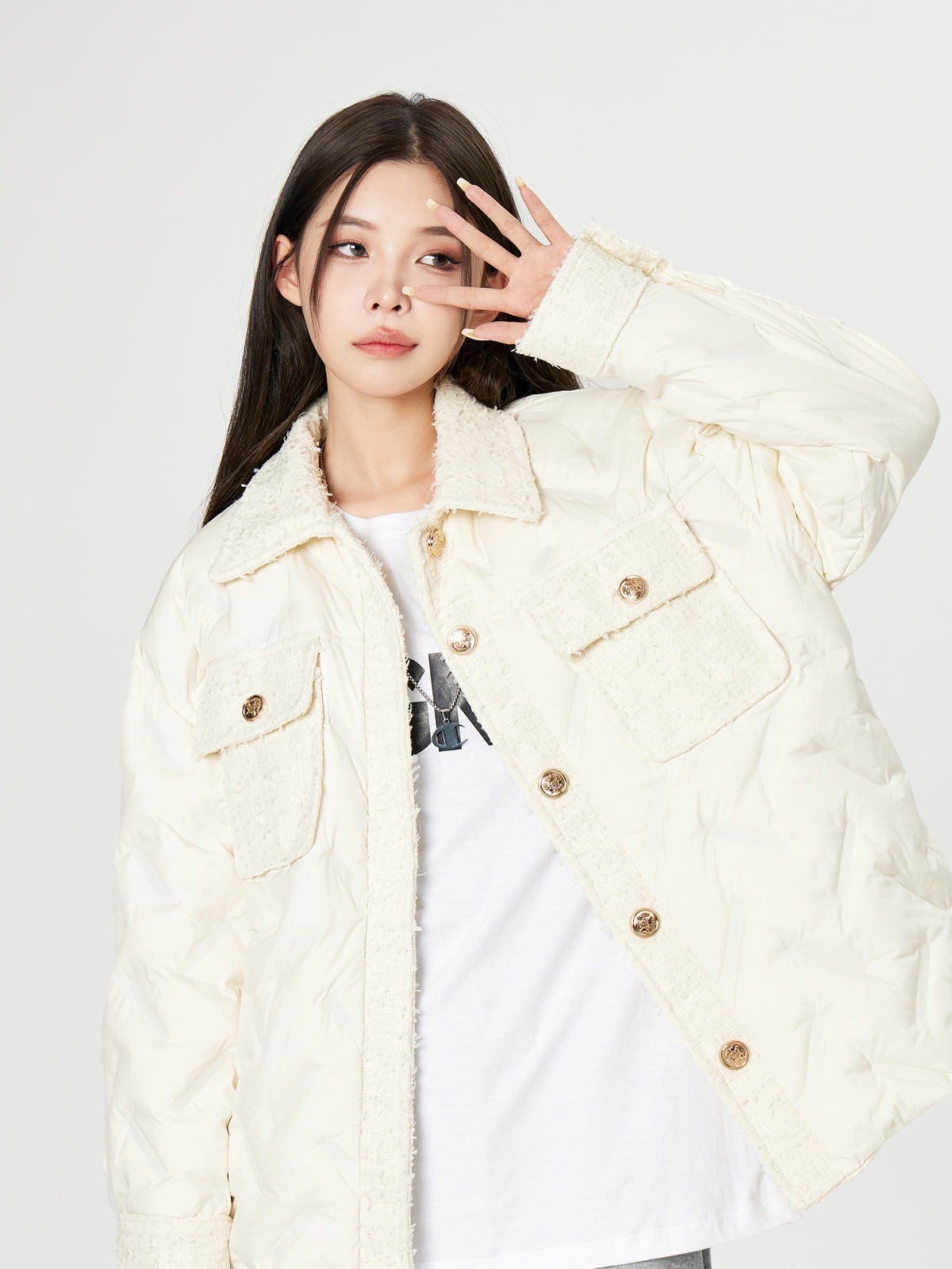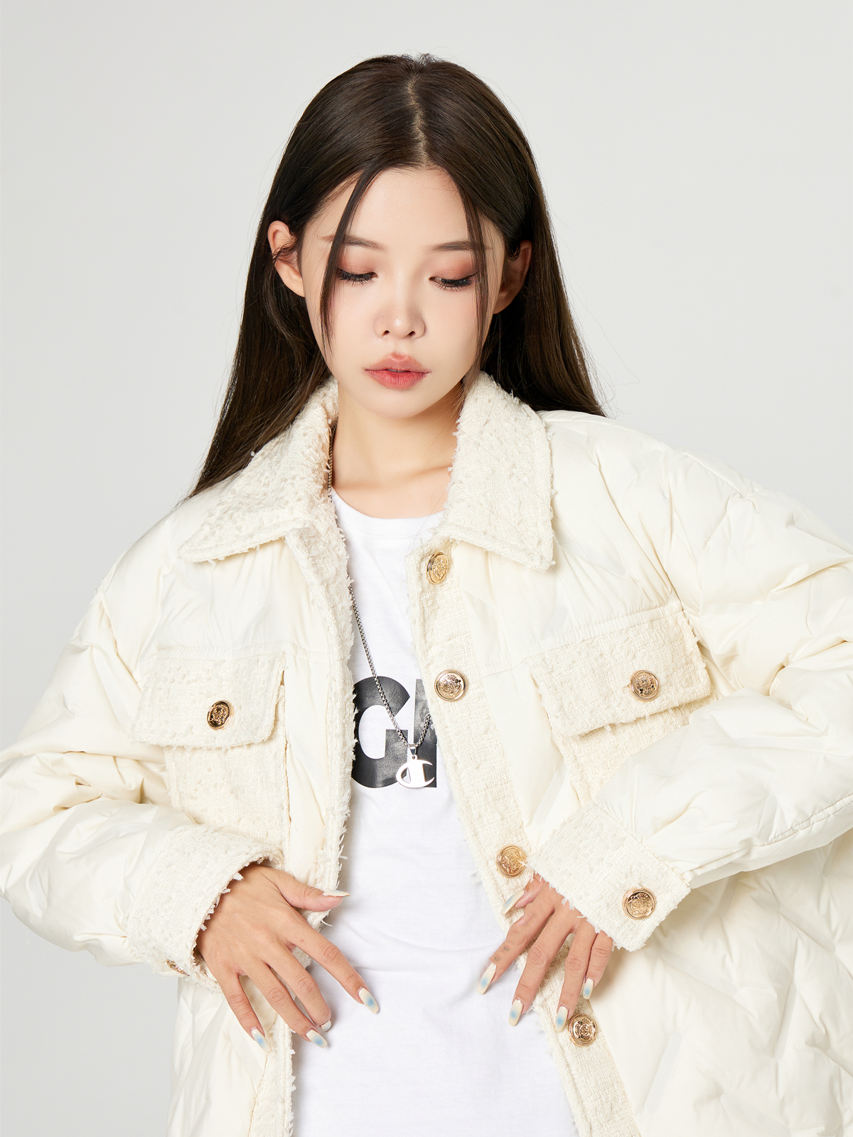 LAMC 最后100件 90绒小香风压花羽绒服女轻薄暖外套 清仓