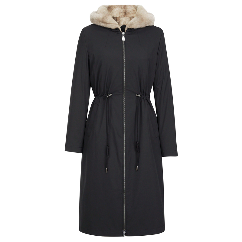 NAERSI娜尔思水貂毛皮草尼克服气质轻奢毛领25年冬冬御寒连帽外套
