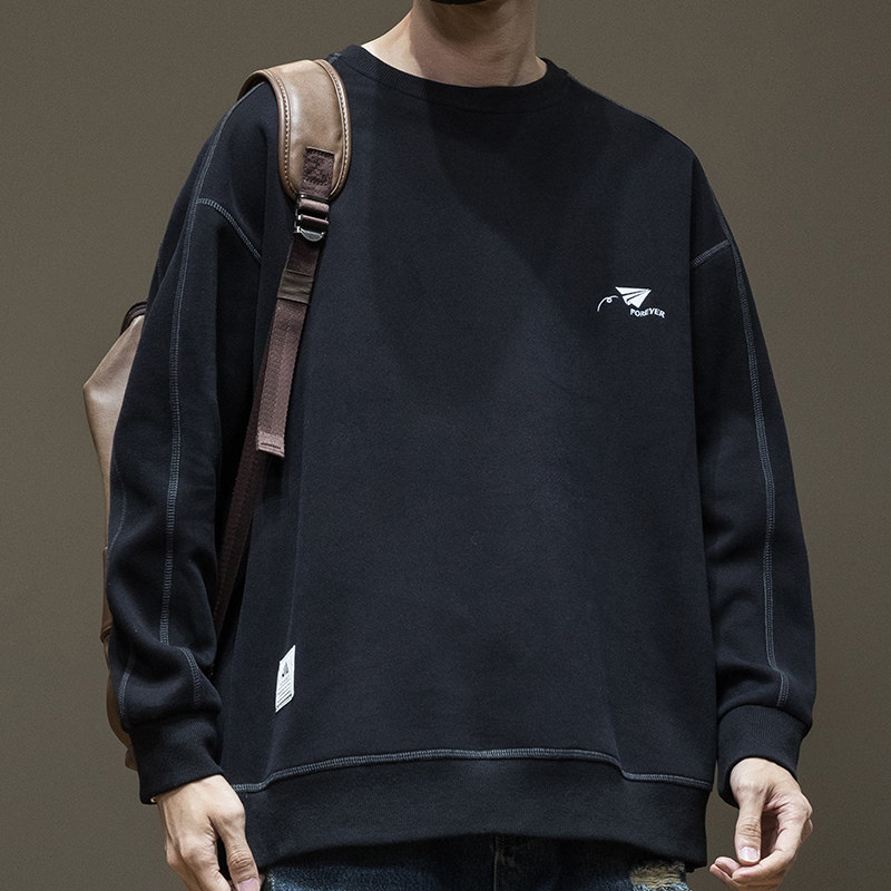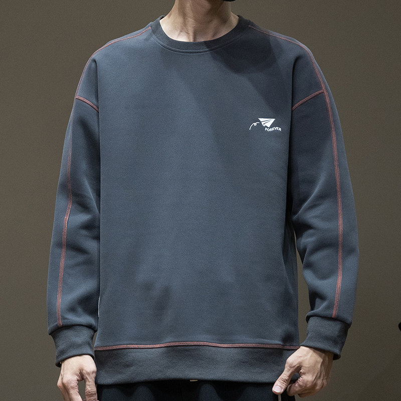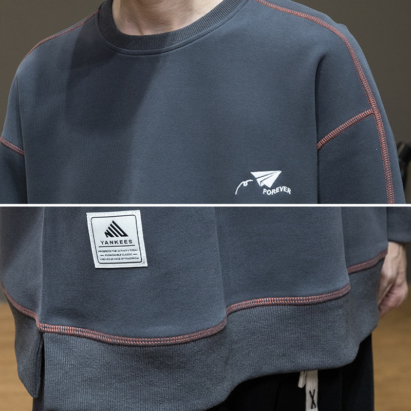 长袖 卫衣男女春秋圆领拼接宽松秋季 上衣 慵懒chic插肩袖 小尼力美式