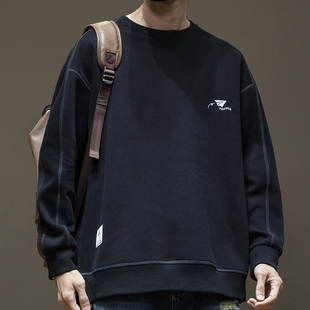 540g重磅无帽复古做旧加绒卫衣男款 男生圆领加厚外套冬 2025新款