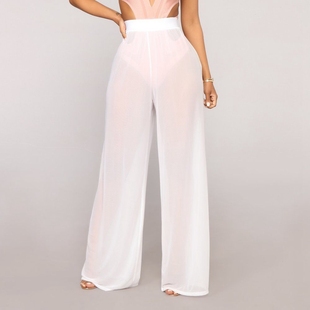 waist mesh wide Solid pants高腰显瘦网纱阔腿裤 high leg color