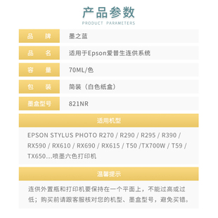 复位芯片821NR 390打印机 防回流连供墨盒 290 T50适用爱普生R270