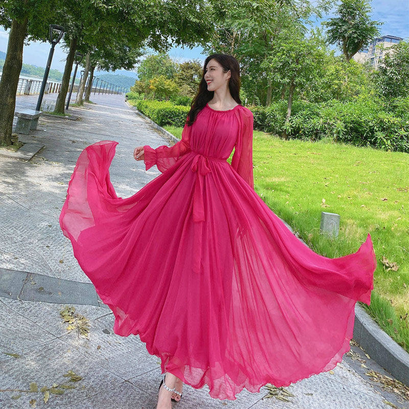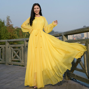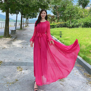 沙滩裙连衣裙新款 及踝雪纺长裙大摆三亚拍照裙海边度假仙女裙 大码