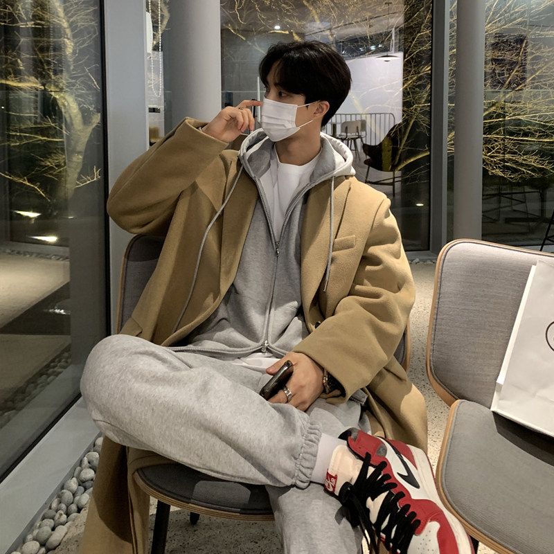 过膝无羊绒呢子风衣外套韩版 毛呢大衣男中长款 宽松落肩 新款 秋冬季