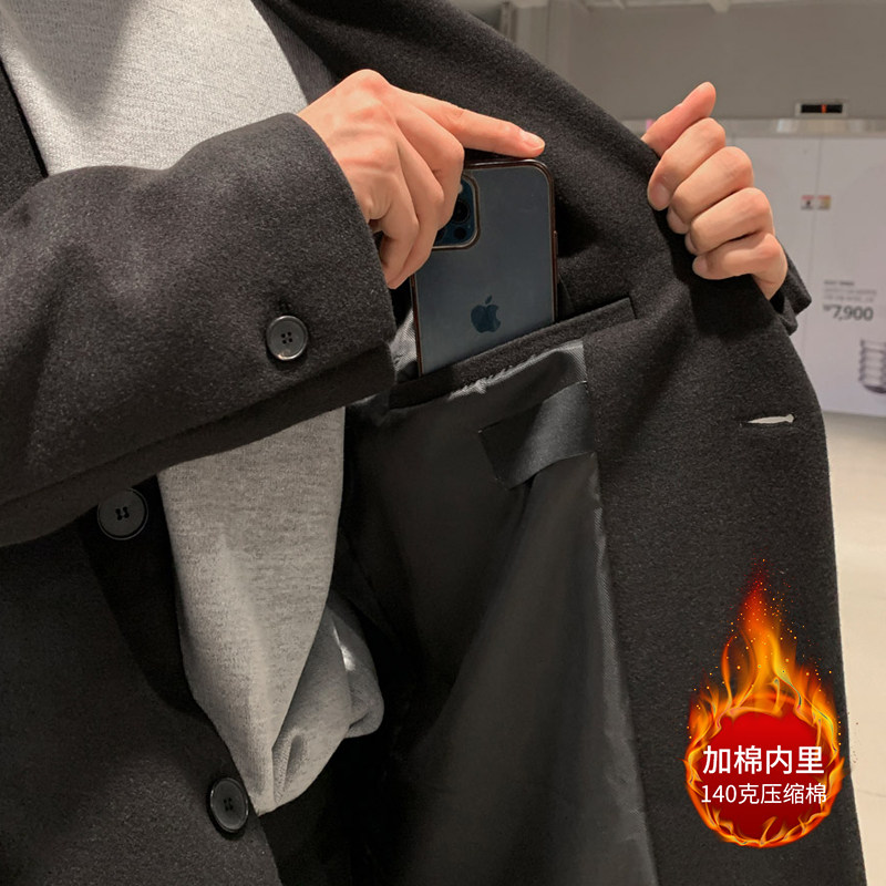 领双排扣呢子风衣外套加厚ins潮流 过膝西装 冬季 毛呢大衣男中长款