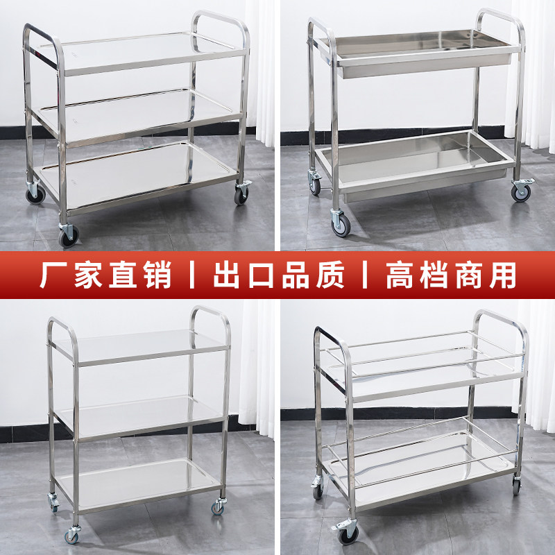 不锈钢餐车加厚三层小推车送餐车收碗车双层餐厅送餐车上菜车商用
