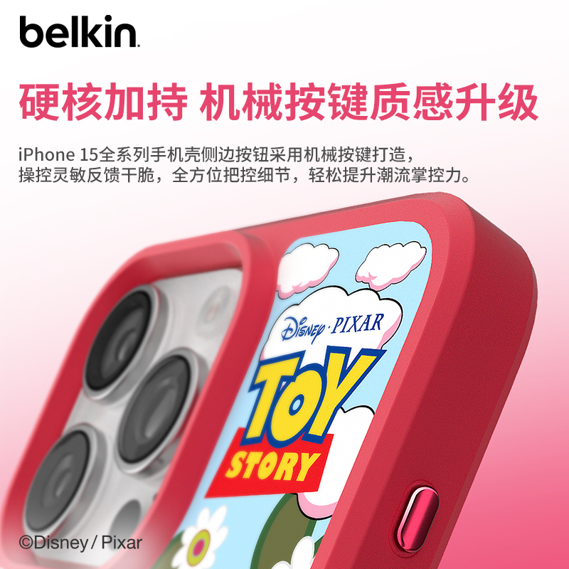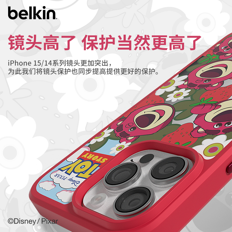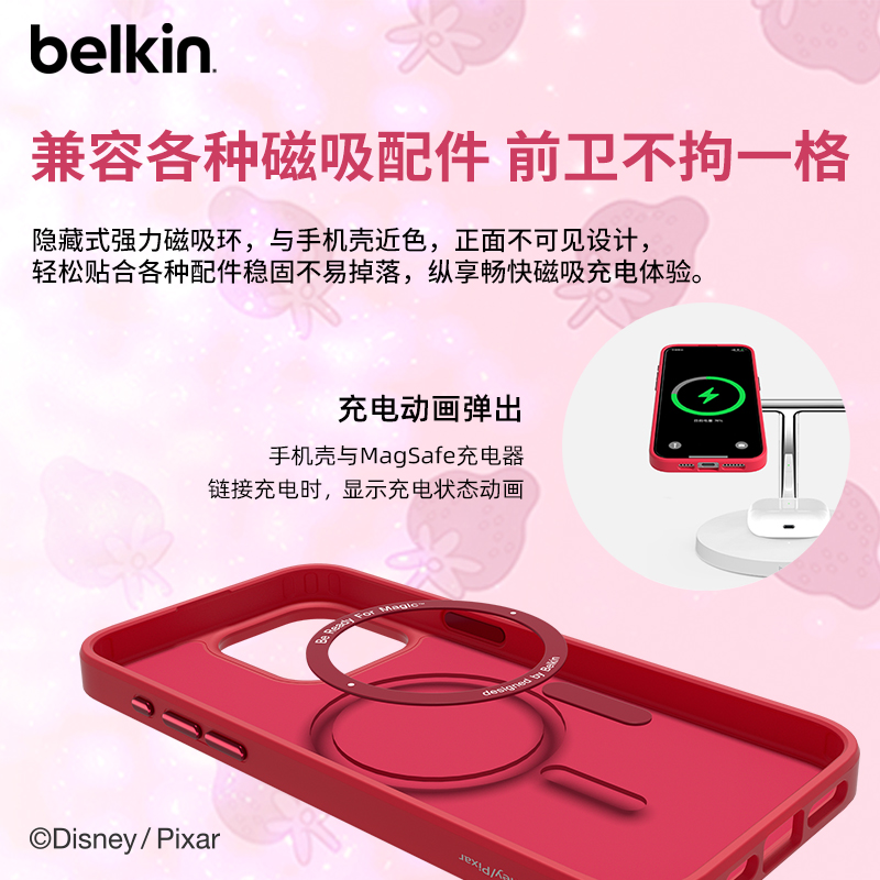 Belkin贝尔金迪士尼草莓熊限定系列适用苹果iPhone15promax手机壳磁吸MagSafe抗菌全包防摔保护套透明镜面壳