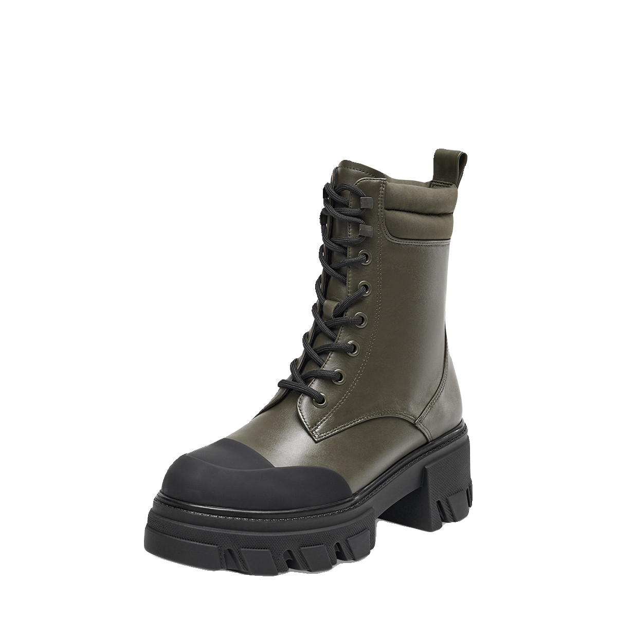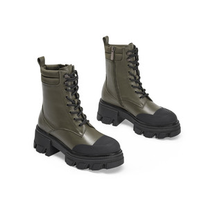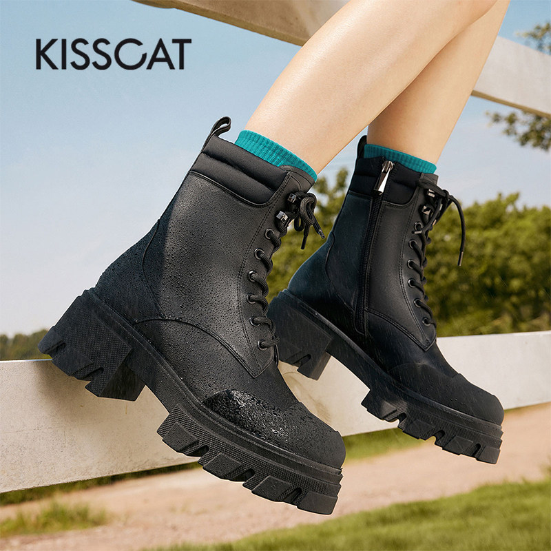 接吻猫秋冬牛皮圆头侧拉链户外厚底马丁靴女KA32723 KISS CAT