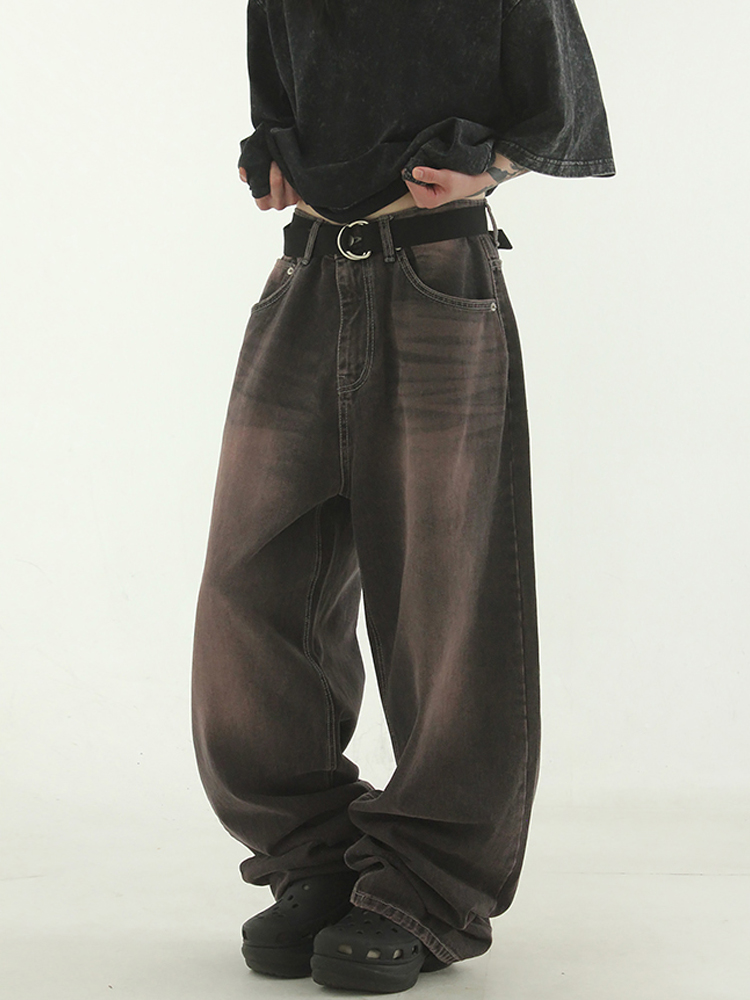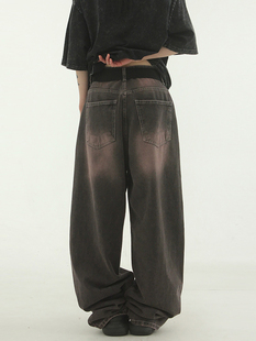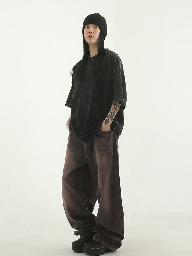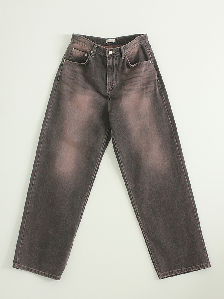 vintage purple 紫黑磨白牛仔裤 23F unisex jean 韩国代购 wide