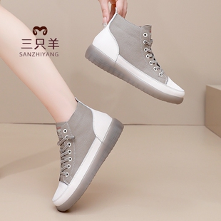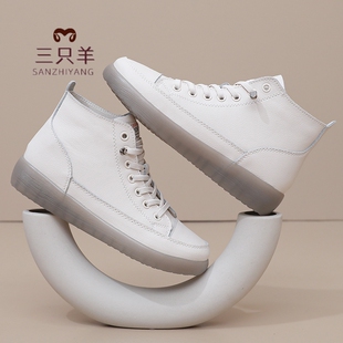 加绒高帮鞋 马丁靴真皮软底棉鞋 秋冬单靴女 女鞋 三只羊短靴2025新款