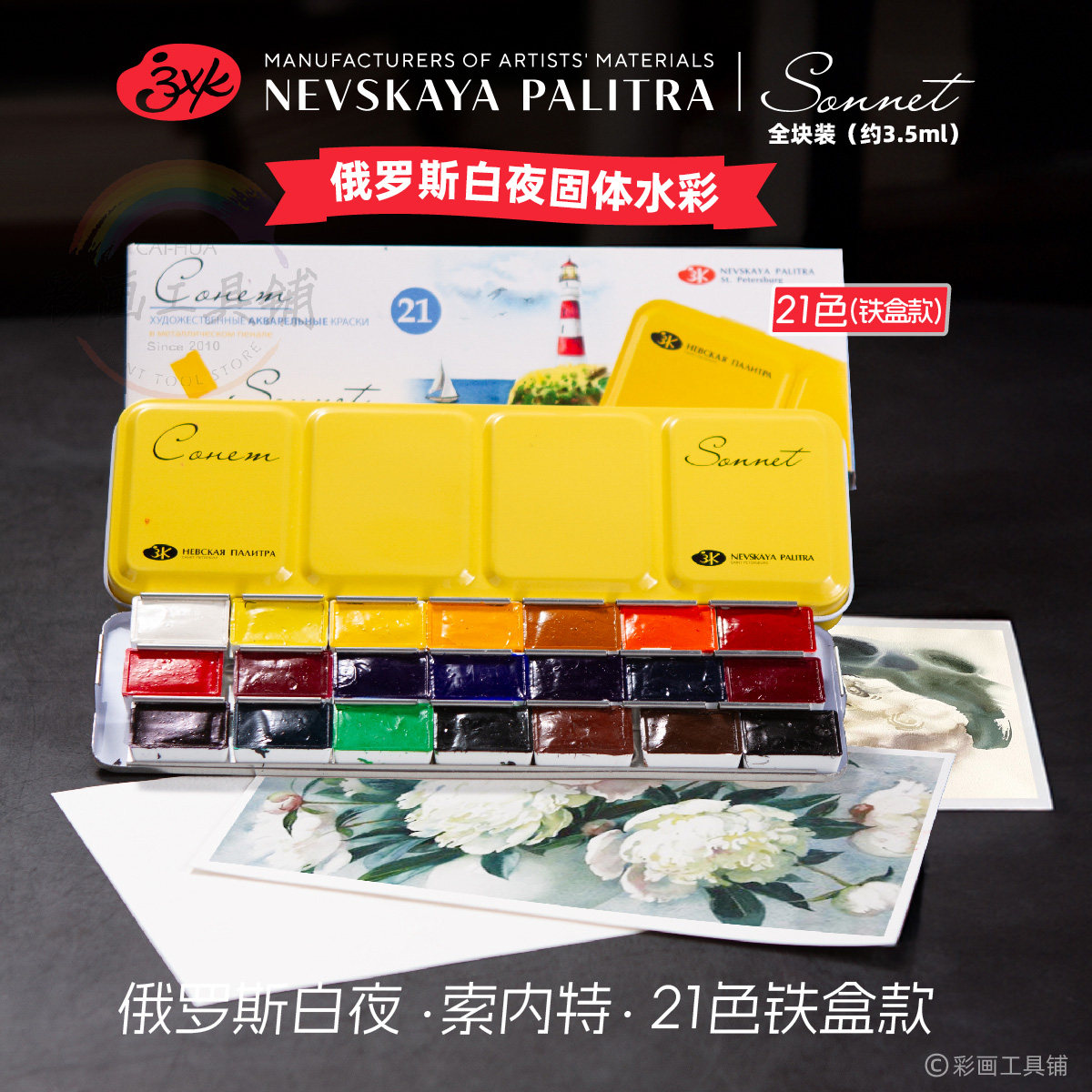 白夜固体水彩24色索内特全块21色固体水彩颜料16色学生水彩颜料
