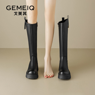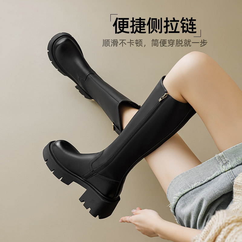 长筒靴女2025新款 大筒围长靴加绒厚底高筒骑士靴 秋冬胖mm粗腿大码