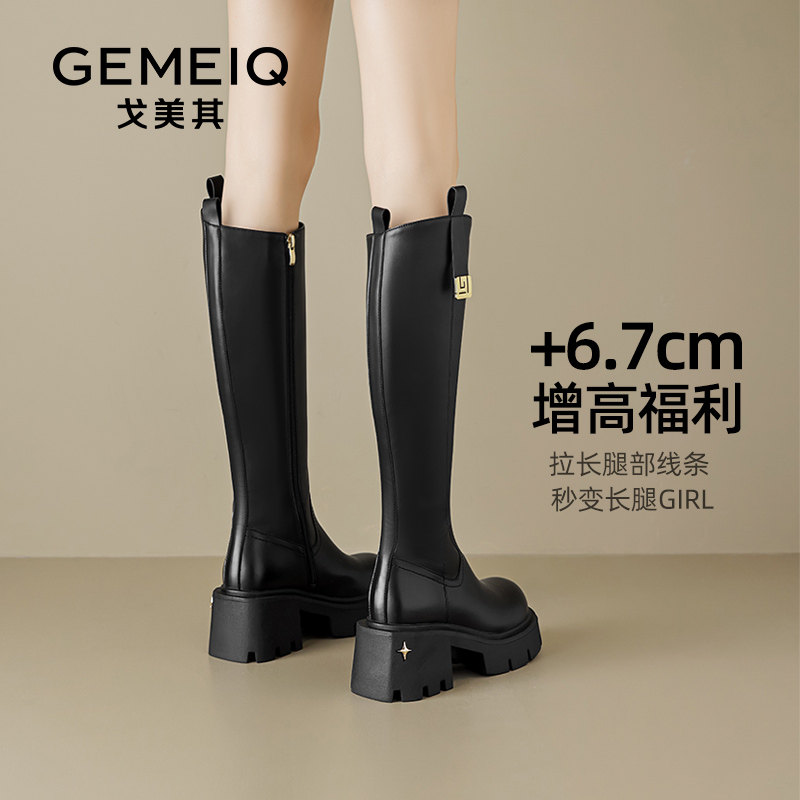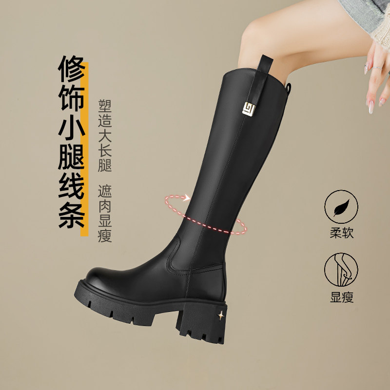 加绒女高筒骑士靴粗腿显瘦长靴 百思图25冬商场新款 自由古巴
