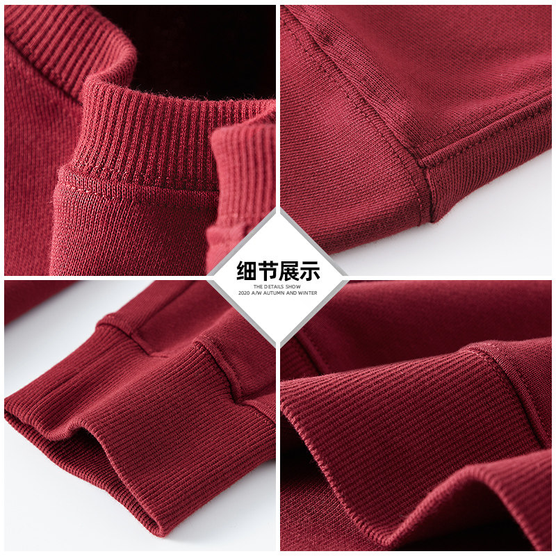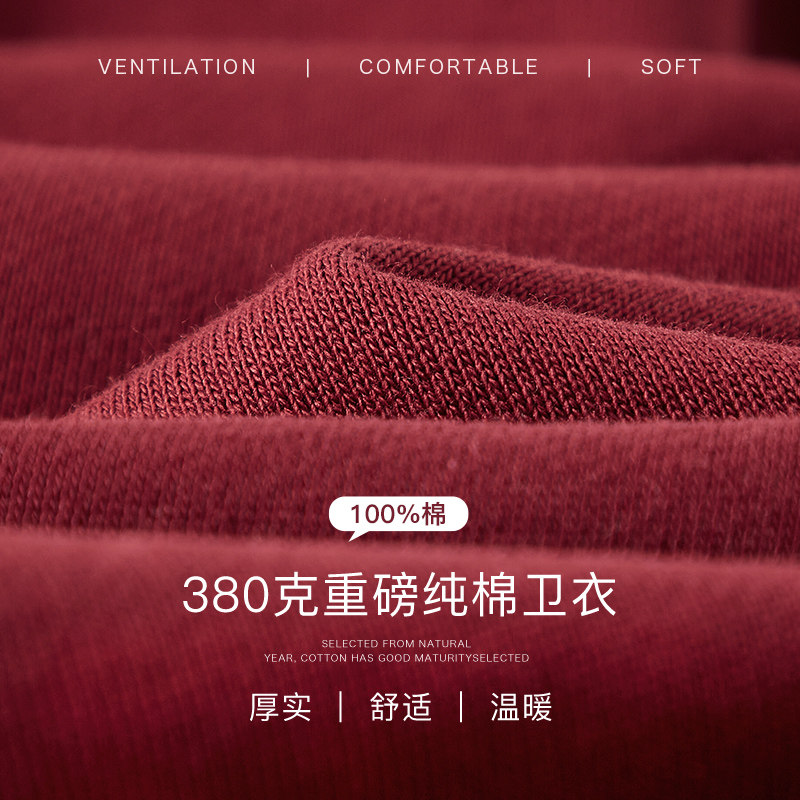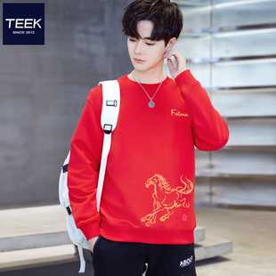 T恤衣服 2026马年本命年红色战袍长袖 TEEK酒红色男装 卫衣加厚加绒