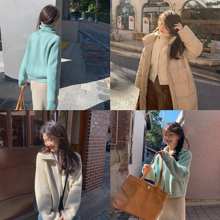 针织打底衫 品牌高级感羊毛衫 女半高领宽松毛衣秋冬加厚羊绒长袖
