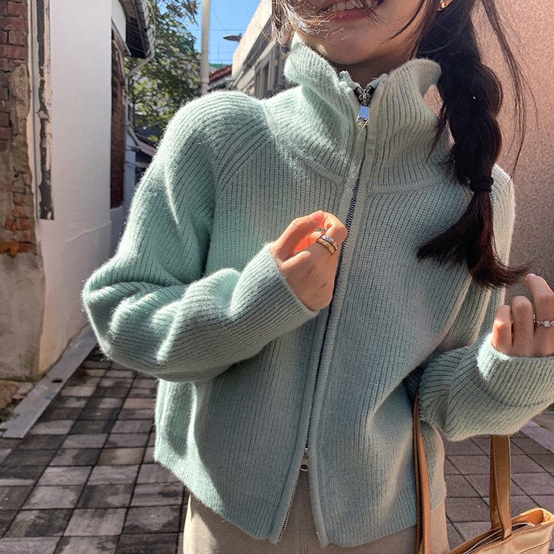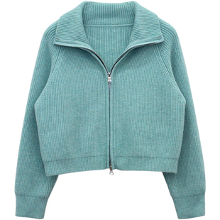 半高领设计感针织开衫 新款 洋气紫色立领方扣毛衣女2025年春季 韩版