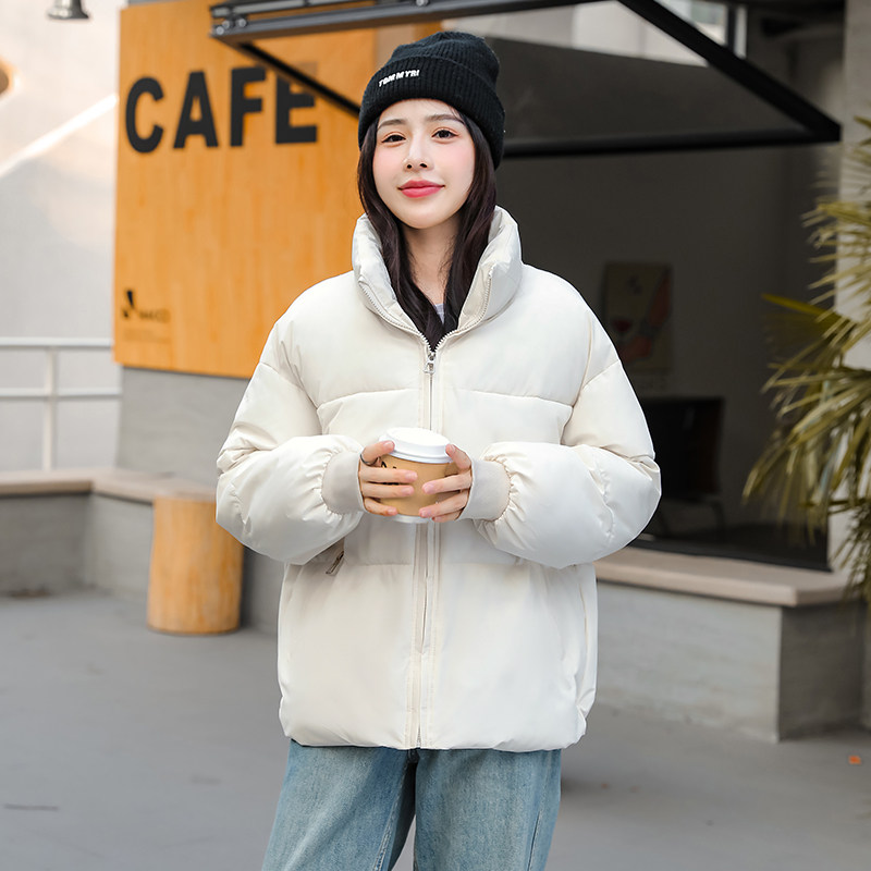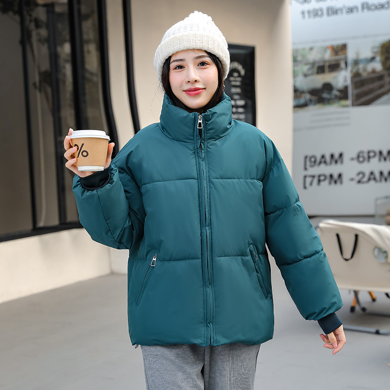 300斤特大码 韩系简约百搭棉服外套女胖mm蓝色加厚保暖面包服上衣